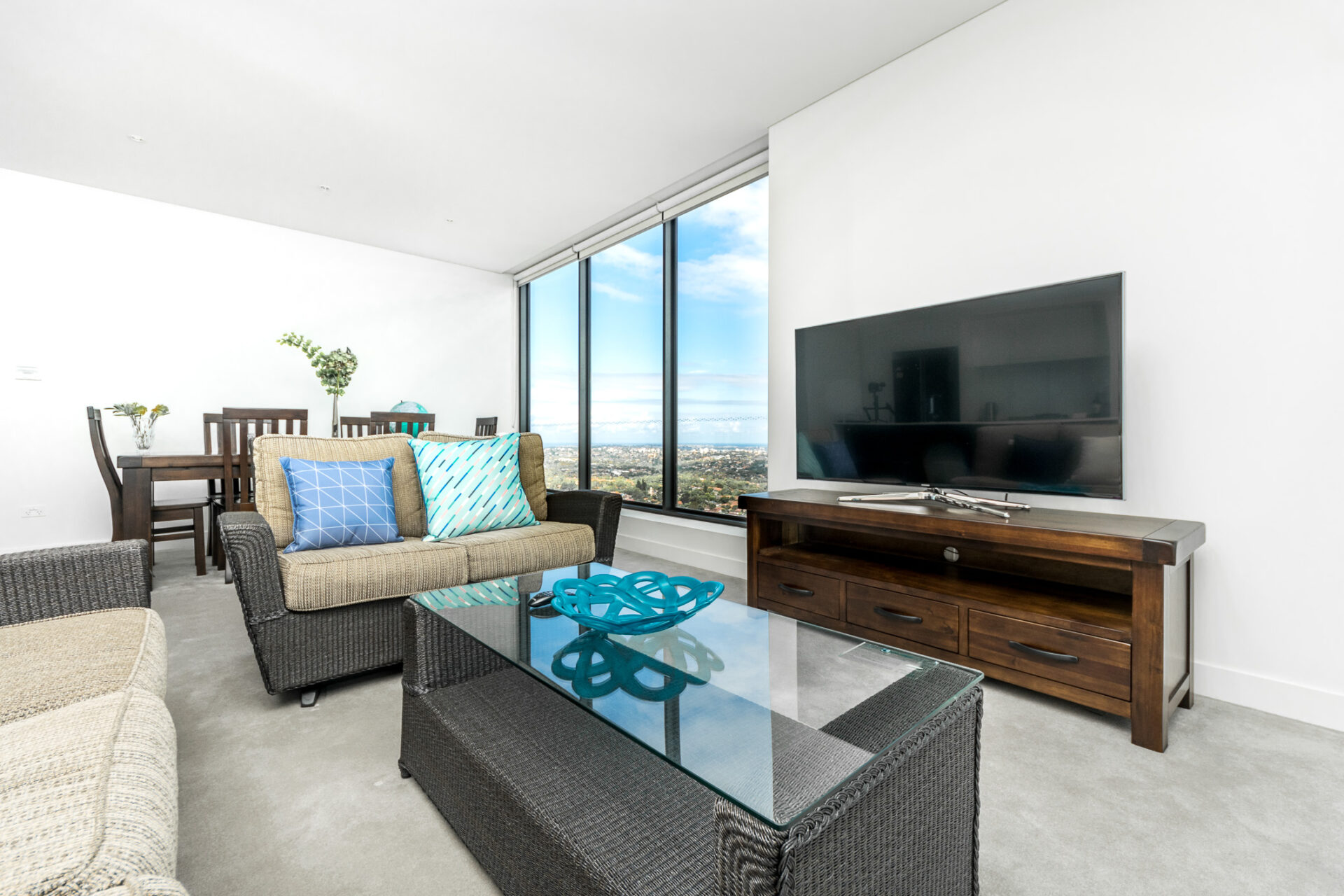 Absolute luxury Mirvac 2 bedroom apartment in the heart of Lower North Shore – Chatswood, with breathtaking views panoramic window throughout living room overlooking Sydney view from level 51.