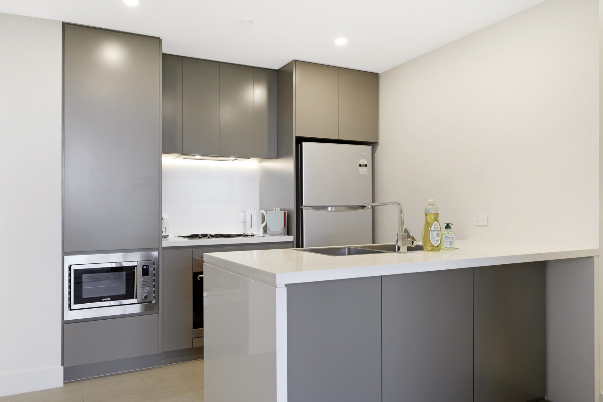 Our premium fully furnished one bedroom apartments feature bedrooms with Queen bed, linen provided, modern bathroom, fully equipped kitchen with cooking facilities, internal laundry, air-conditioned and car space. WIFI included.